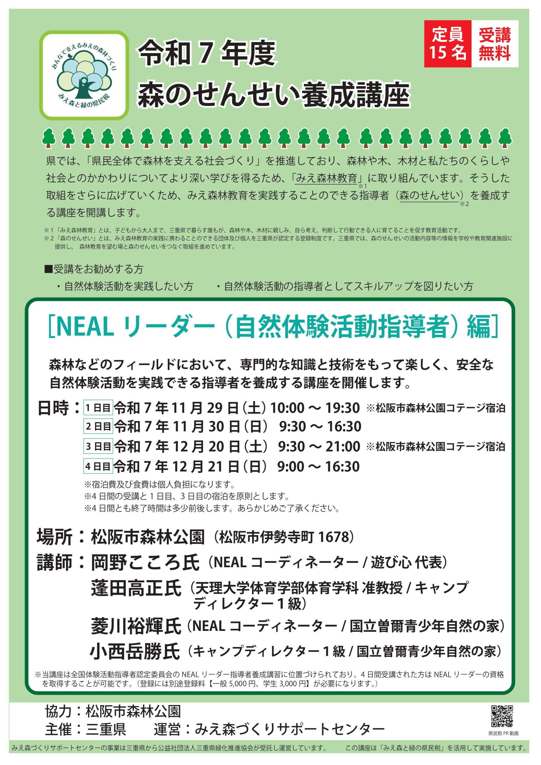 NEALリーダー(自然体験活動指導者)養成講座開催のお知らせ