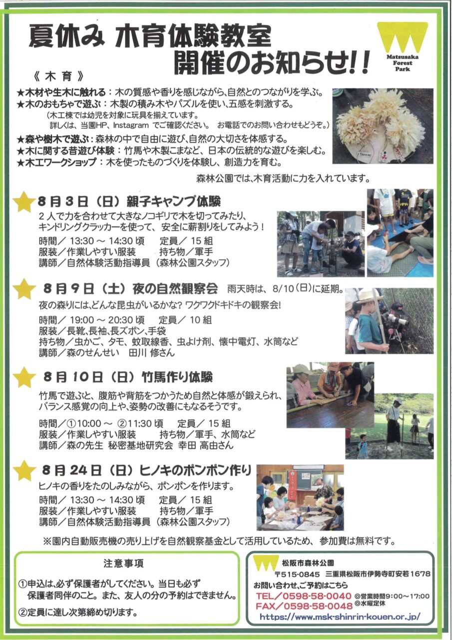 夏の木育体験教室開催のお知らせ!!