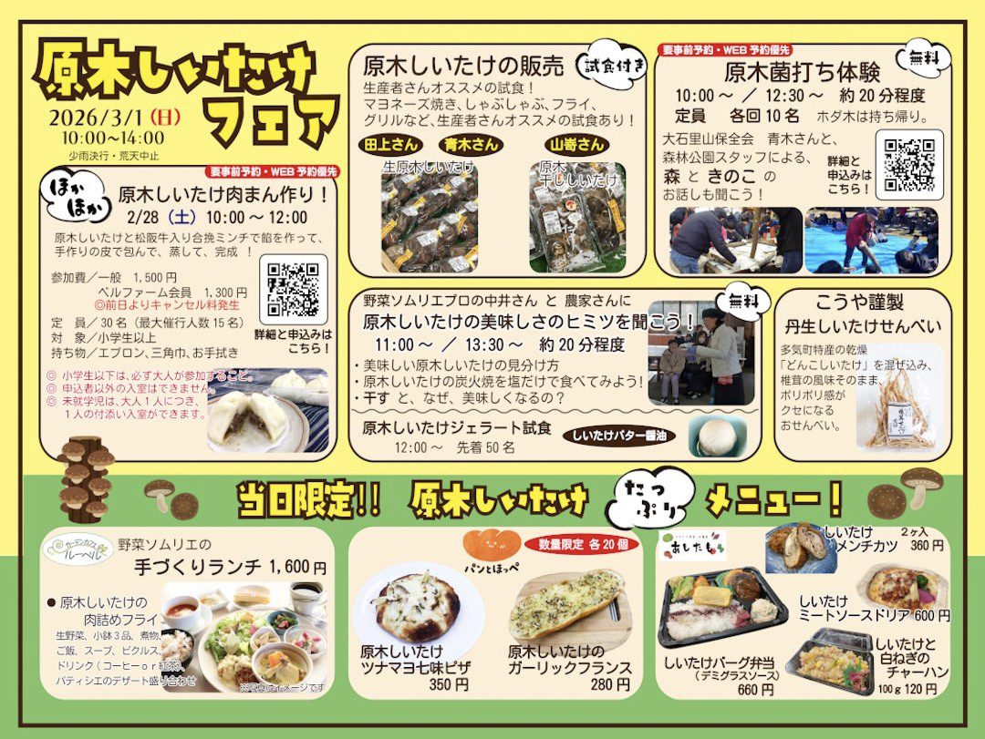 2026年3月1に、私共が共同運営しております「松阪農業公園ベルファーム」にて「原木しいたけフェ...