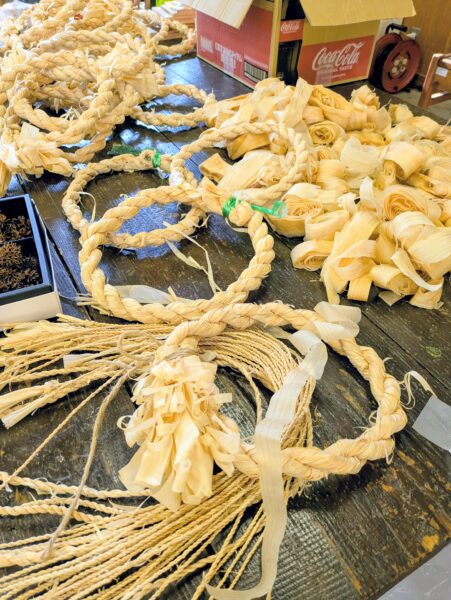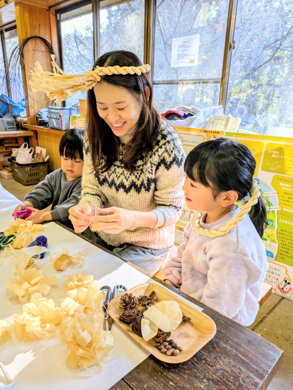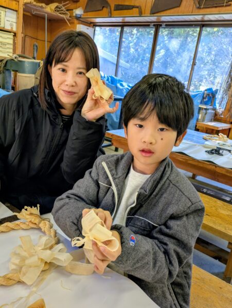 Check it イベント詳細 森の学校IN松阪市森林公園 2025 12/07 2025年12月7日(日) 松阪市森林公園 木工棟にて「ヒノキでリースづくり」が開催されました。 ヒノキを削る時に出るヒノキの皮を使ってクリスマスにピッタリなリース作りが行われました。 乾燥しているヒノキを湿らせて作るのがポイント! 最後は出来上がったリリースに思いもいの松ぼっくりや飾りを付けて完成。参加されたお子さんは、出来上がった作品をとても嬉しそうに見せてくれました。 (参加者 20名)