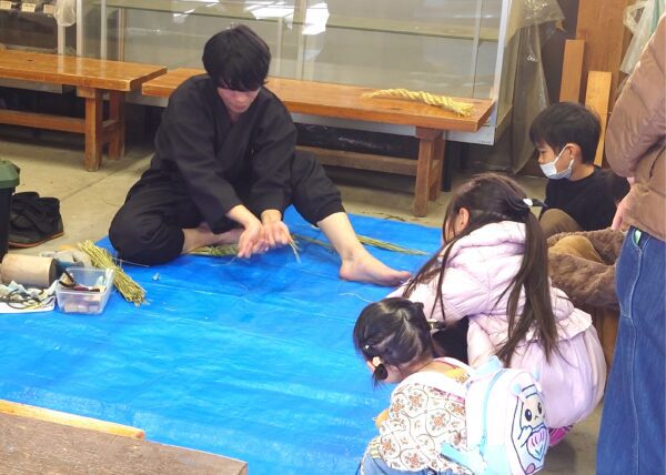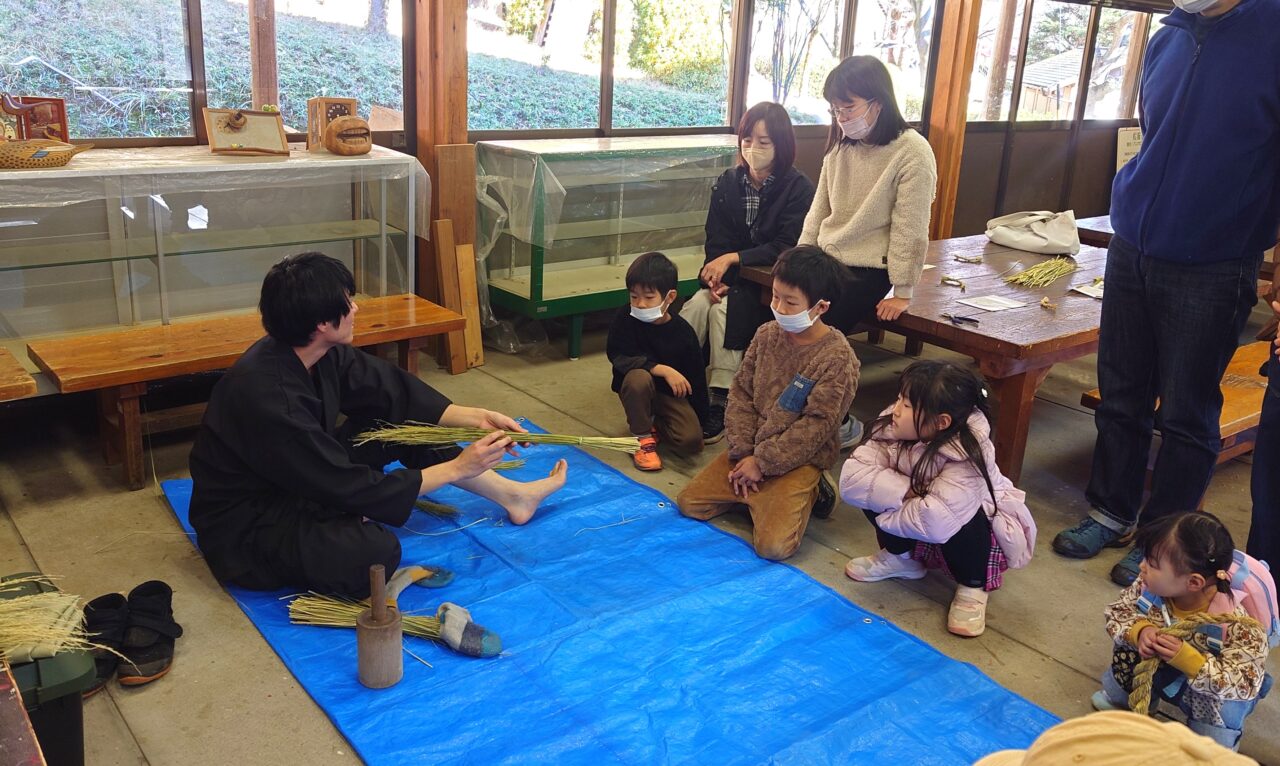 午前と午後に分かれて、普段体験したことの無いしめ縄づくりを親子で協力しながら作りました!