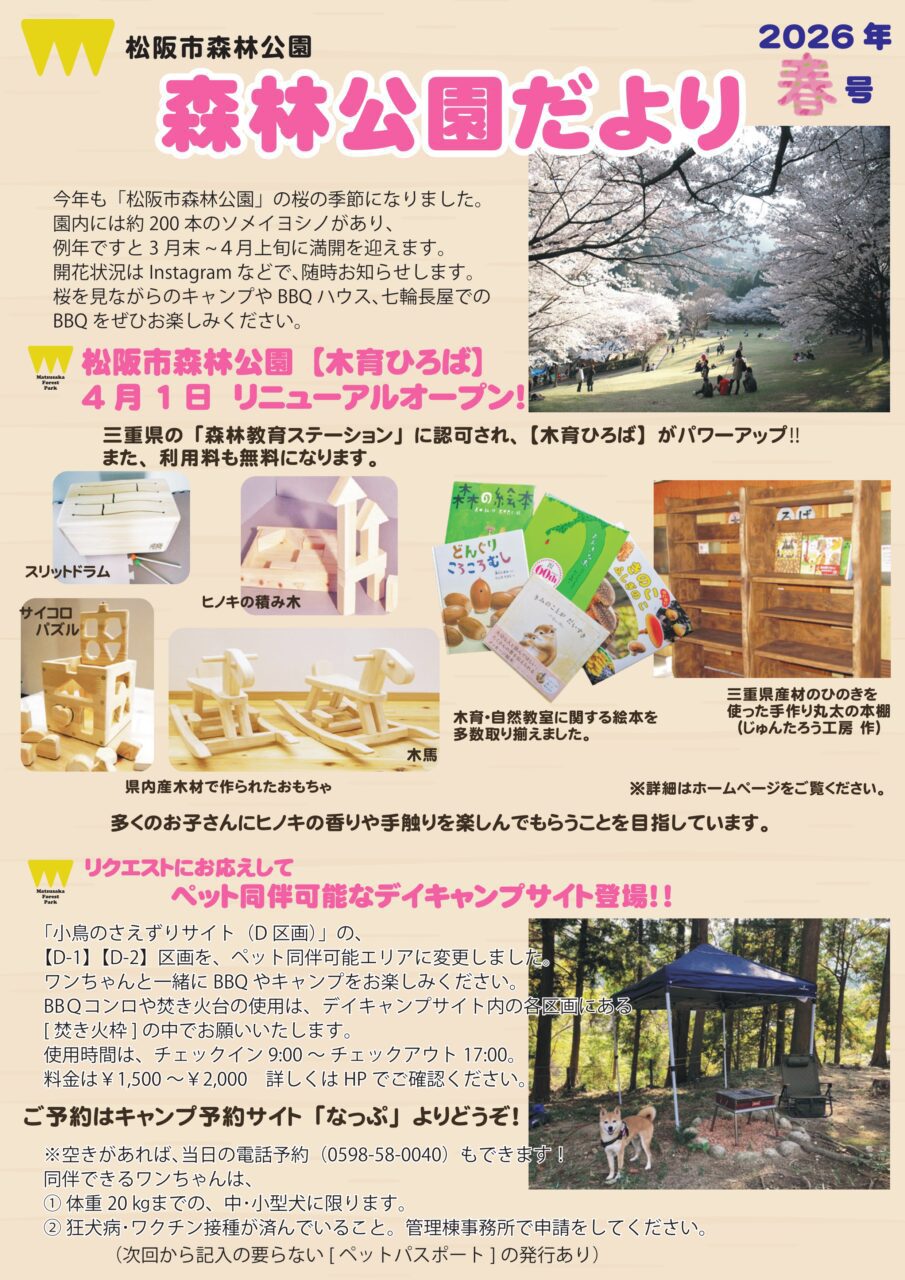 森林公園だより春号が出来上がりました!下記チラシ内容ご確認ください。
