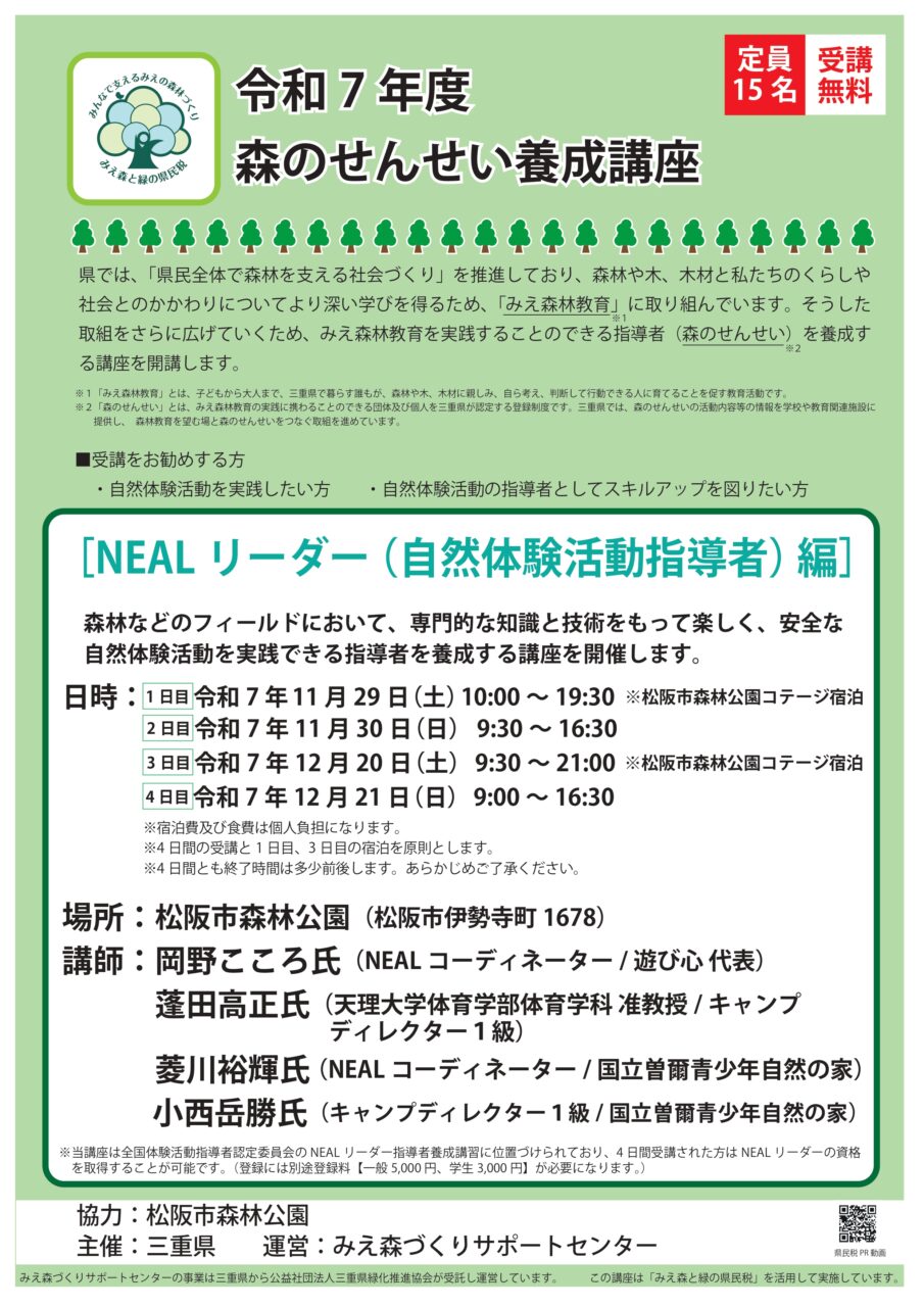 NEALリーダー(自然体験活動指導者)養成講座開催のお知らせ 2025 10/23 ニュース